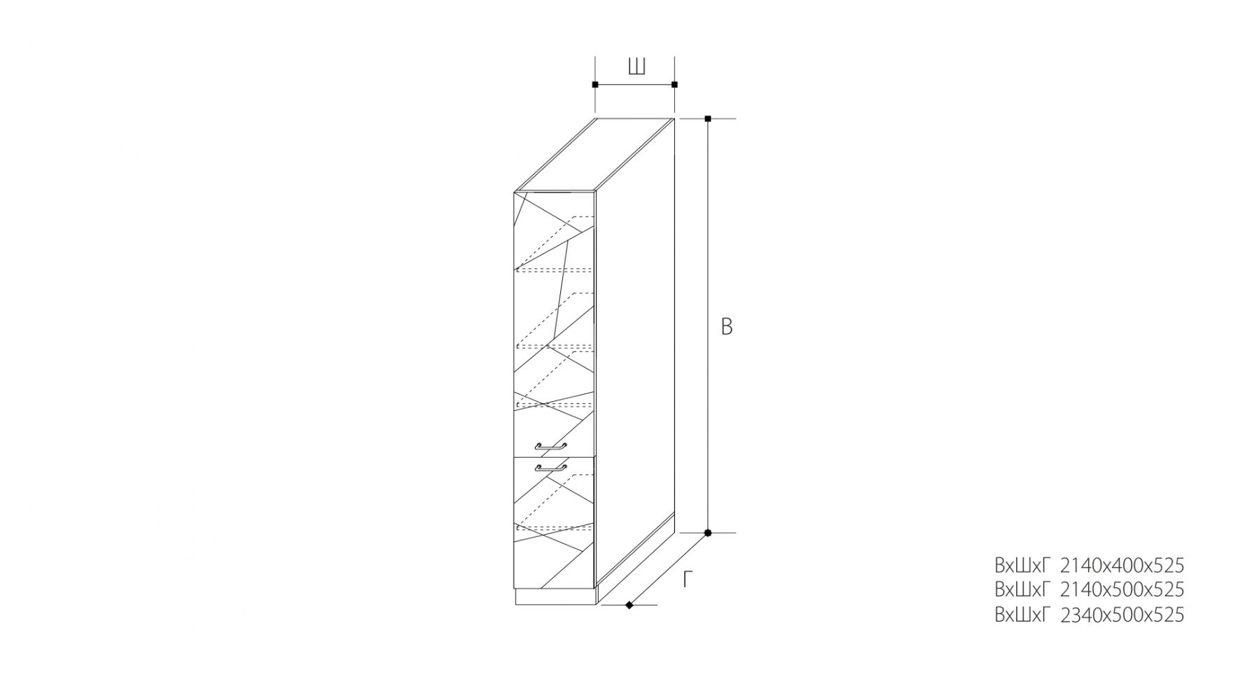 ВхШхГ: 2140х400х525 мм.